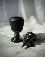 Black stoneware with metallic glazed lid and base. Made in New Zealand By Hellespont Ceramics.