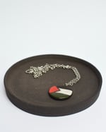 This piece features a hand-painted Palestinian flag, to wear in solidarity with the people of Palestine. The flag has been painted on black stoneware with underglaze, then sealed with a clear glaze. Every piece is unique and carries the charm and variations of a handmade item.